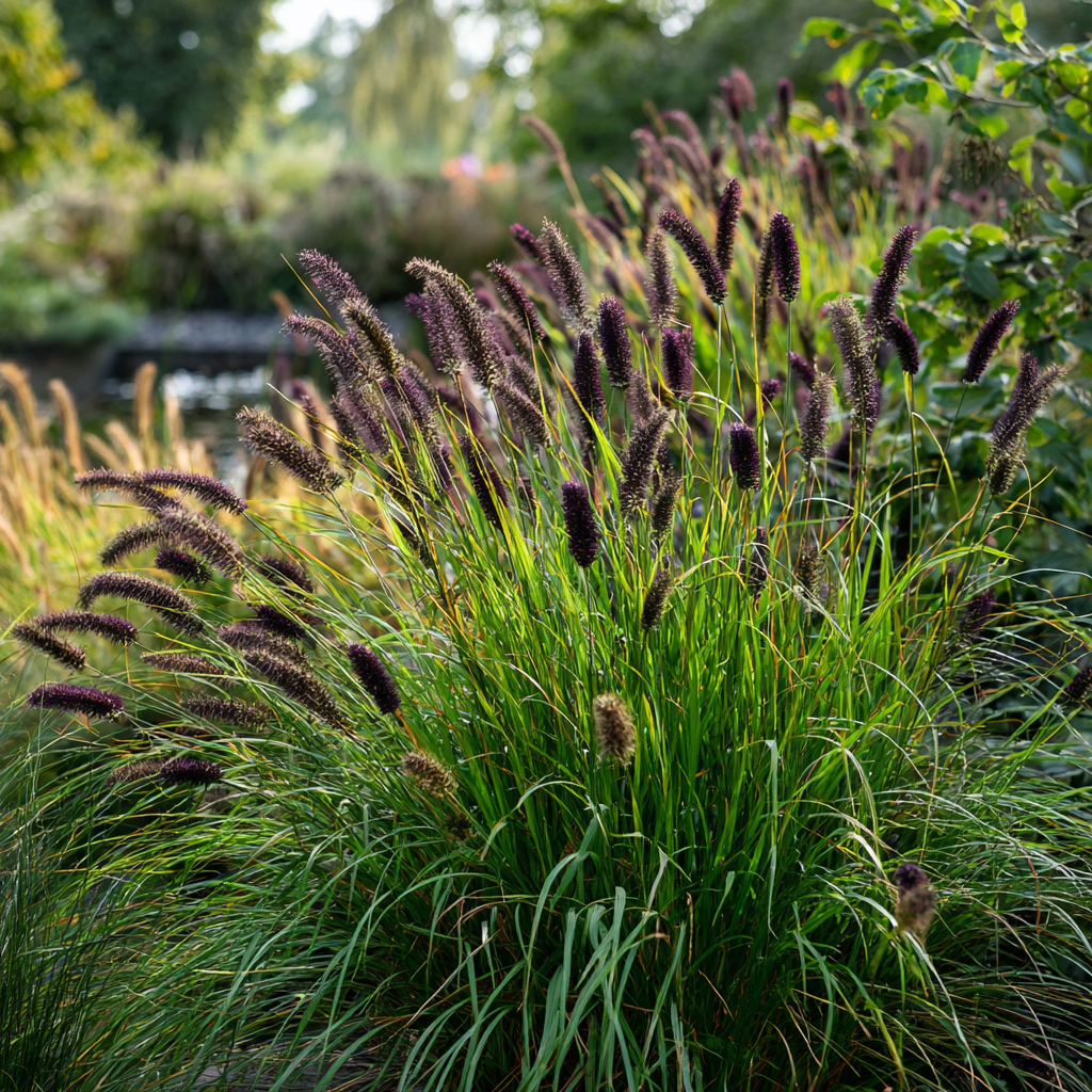 Pennisetum 'Moudry' combineert prachtig met herfstbloeiers, vaste planten en andere siergrassen.